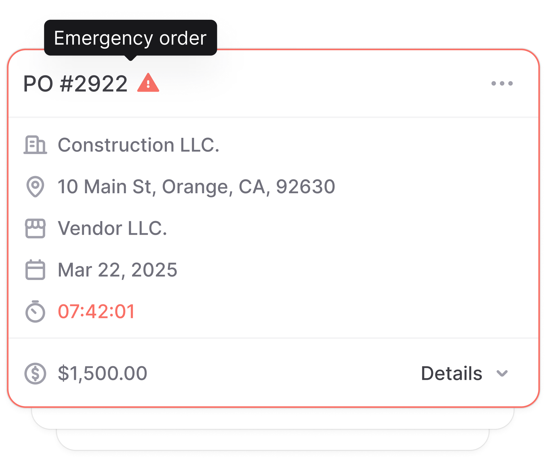 Customers and CSMs track every emergency order in a dedicated Emergency Log tab with timelines, vendor notes, and outcome reports.